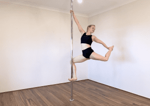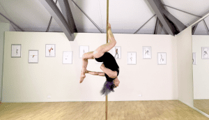 The Ice Skater is a classic Intermediate shape that looks cute low to the ground and *amazing* when done up high! It’s always impressive to watch because of how far away from the pole it takes your body, and it’s also really pretty and adds flair to any combo. Get your skates on and give it a go!